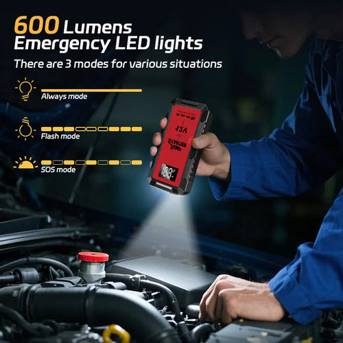 Un dispositivo 3-in-1 per la tua sicurezza totale. Avvia l'auto all'istante, ricarica dispositivi e include un martello d'emergenza, offrendo potenza e affidabilità superiori rispetto ai cavi standard.